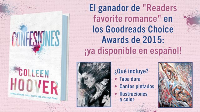 Confesiones es su nueva obra, intensa y reveladora, donde la autora vuelve hacer muestra de su habilidad única para contar historias emotivas y que hacen vibrar. Hoover construye un relato profundamente emocional que indaga en todo aquello que guardamos bajo llave: las heridas no curadas, las verdades silenciadas y el poder, a menudo demoledor, de las segundas oportunidades.